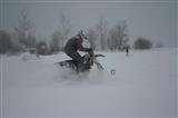 Nevidím! Jak mám kurňa testovat, když nemůžu otevřít oči? Ta zatracená bílá srágora je všude. Mám jí plný brejle, helmu, oči, plný zuby. To poslední ne doslova. Právě si to totiž dávám na nejnovější sněžné vychytávce Explorer. Tenhle Explorer je namontovaný na zle vytuněné RM-Z450 (Öhlinsy, laďák, tlumič řízení a tak podobně), jsou na ní startovní čísla 25 a nápisy Bittner. Letím sněhem, do uší mi mocně řve Akrap a Explorer pode mnou dělá úžasné věci. Miluju věci, které fungují. Tahle sněžná záležitost, ačkoli vypadá, že někomu vypadla z hlavy ve čtyři ráno na barový pult, se i přes svých zhruba 50 kilo chová ve sněhu dost suverénně.