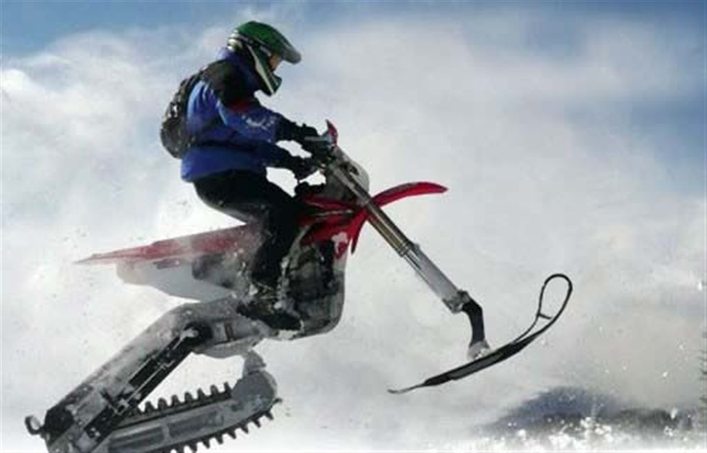 Nevidím! Jak mám kurňa testovat, když nemůžu otevřít oči? Ta zatracená bílá srágora je všude. Mám jí plný brejle, helmu, oči, plný zuby. To poslední ne doslova. Právě si to totiž dávám na nejnovější sněžné vychytávce Explorer. Tenhle Explorer je namontovaný na zle vytuněné RM-Z450 (Öhlinsy, laďák, tlumič řízení a tak podobně), jsou na ní startovní čísla 25 a nápisy Bittner. Letím sněhem, do uší mi mocně řve Akrap a Explorer pode mnou dělá úžasné věci. Miluju věci, které fungují. Tahle sněžná záležitost, ačkoli vypadá, že někomu vypadla z hlavy ve čtyři ráno na barový pult, se i přes svých zhruba 50 kilo chová ve sněhu dost suverénně.