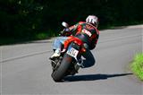 Lehké překlápění a svižnější průlety zatáčkami ukázaly, že teorie o vyšší hmotnosti pneumatik byla sice správná, ale že by to byl nějaký ultra rozdíl a s motorkou jsem se pral, to ne. Pouze když si v zatáčce sáhnete po přední brzdě, tak má motorka větší tendenci se narovnávat. Potěšitelná je lineární ovladatelnost, není to rozhodně špičatá závodní gumice, která po rovině balancuje na špičce a jakmile se trochu nakloníte, spadne do vinglu. Tady je na okreskách stabilita v přímém směru i mírném náklonu pohodová, na vaše pokyny motorka reaguje předvídatelně.