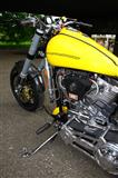 Tomáš je maximalista a i při tak brutálním výkonu a krouťáku, který motor poskytuje, se rozhodl, že se bude šetřit na váze, kde se dá. Proto vstoupili do hry italští dodavatelé a superbiková technika. Rám dostal luxusní USD vidlici Paioli s karbonovým předním blatníkem (přímo od výrobce dimenzovaná na H-D Softail) a lehká kovaná kola Marchesini. Motorku krotí trojice závodních kovaných brzdičů Brembo a pohyb zadní kyvky SSC řídí dvojice tlumičů Progressive Suspension.