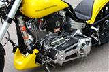 Rám koupili hoši u SSC – model Drag Style se zvláštním důrazem na celkovou pevnost při použití vysoce výkonného motoru. Do rámu se nakonec muselo zasáhnout, protože se do něj ten obrovský dvouválec nevešel! K motoru přibyla zesílená šestirychlostní převodovka S&S, kompletní kit otevřeného primárního 3“ řemenu Barnett Scorpion Billet se suchou dragsterovou „lock-up“ spojkou. Tuhle věc u nás opravdu nepotkáte.