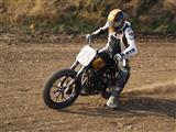 setpadesátky v nabídkovém katalogu ještě v roce 1993! Tenhle hodně ostrý motor s vačkami v hlavách válců (rozvod OHV) se opravdu povedl a přivedl značku H-D ke stovkám triumfálních vítězství. Po úpravách byl osazován do speciálů na rychlostní rekordy, prototypů silničních superbiků, do silničních a dokonce i krosových sidecarů. S motocyklem XR 750 z roku 1970 prováděl také legendární kaskadér Evel Knievel své rekordní skoky. Ovšem flattrack rozhodně není jen o Harleyích a velkých objemech. Záleží na typu dráhy. Těžké Harleye excelují především na dlouhých dráhách, kde mají možnost pořádně se rozjet. Krátké dráhy patří třídám lehčích motocyklů s objemy 250, 350 a 500 cm3. Na shorttracku můžete vidět dokonce dvoutakty s objemem od 125 do 500 cm3. Jednou z nejmladších tříd je tzv. Thunderbike Class, vypsaná pro jednoválcové čtyřtakty s objemem od 600 cm3 výš. Stroje těchto kategorií vychází tvarem, siluetou a konstrukcí z velkých flattrackových Sportsterů, ale jsou podstatně lehčí. Asi nejpoužívanějšími motory v těchto speciálech jsou léty osvědčené vzduchem chlazené jednoválce Rotax různých objemů. Mimochodem ten samý typ motoru, který se montoval i do malé série Jawy 500 4T postavené kdysi pro naši hradní stráž. Flattrackové závoďáky s tímto motorem dokonce produkovala společnost H-D jako tovární stroje, takže spousta z nich má na nádrži velký nápis Harley-Davidson. Jinak se pro flattrack používají různé motory z výkonných krosek a hlavně supermotardů. Po úpravách mají ty nejsilnější z nich kolem 70 koní.