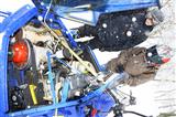 Pocity na palubě? Normální sněžný skútr je dlouhý, úzký a nízký. Vezmete-li normální sněžný skútr a posadíte ho na malou sněžnou rolbu, dostanete Sherpu. Rozměrově máte dodávku s vlekem. Vlevo pod levým řídítkem je masivní páka jako ze starého amerického sedanu. Tou se volí zpátečka, neutrál, plazichod (L) a rychlochod (H). Startuje se pomocí klíčku jako u auta, dva vypínače u startéru slouží k pouštění majáku a k nucenému chlazení přídavnými větráky proti přehřátí.