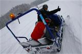 Jaké bylo naše překvápko, když jsme na náměstí v Černém Dole onu „sněžnou Karosu“ uviděli na vlastní oči. Nikdo z nás netušil, že bude skútr tak ohromný a navíc že za sebou bude mít vlečňák s rozměry solidní manželské postele. Dobrá skútrolba. Tak převlíkat!