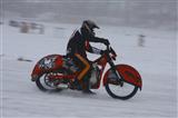 Moje představa o tom, že motocykl si jen tak volně klouže po absolutně skleněném ledovém povrchu, se rozplynula hned, jak jsem za to začal trošku víc tahat. Testovat ledovou plochou dráhu hned po závodech je pro začátek ten největší nesmysl, jaký jsme si mohli vymyslet. Led byl rozsekaný a děravý plný nepřehledných a nebezpečných kolejí. Tohle nebyla plochá, ale motokros na druhou! Ostatně jen tak pro zajímavost. Každý, kdo si myslí, že ledová plochá je skoro to samé jako klasická plochá, je na obrovském omylu! Ano, tyhle dvě disciplíny jsou příbuzné a mají spoustu společných znaků (motor, velká kola, oválnou dráhu, levou nohu mimo motorku...), ale to hlavní, tedy jak se vlastně jezdí, je úplně odlišné. Klasická plochá dráha ja postavená na tom, že se maximálně využívá jízdy v driftu na „utrženém“ zadním kole, které hrabe jako pominuté a jezdec tento efekt vyrovnává. Kdežto na ledu je utržení zadního kola ten nejvíce nebezpečný moment, kterého se každý obává. Průjezd zatáčkou na ledové ploché bych asi nejvíce přirovnal k závodům supermoto. Jezdec se snaží využít maximálního náklonu, při kterém hřeby na ledu pořád spolehlivě drží, a tím zdolat průjezd zatáčkou co největší rychlostí.