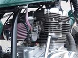 Najít pro tento stroj vhodné výfuky byl však další oříšek k rozlousknutí. Kluci vymýšleli kdeco, až nakonec Kuba zalovil v garáži v sekci „Bordel, který se jednou budou báječně hodit“ a přinesl italské tlumiče LaFranconi. Bylo rozhodnuto! Přepákování dodělal Kuba osobně, stupačky SBK dodal Petr Bareš, sedlo zkušený mistr čalouník Martin Tichý a přímé vzduchové filtry K&N. Asi nejdůležitější informací ve výčtu komponentů je nádrž, díky které se i znalci nechali ošálit a bez skrupulí mluvili o tomto stroji jako o Kawasaki. I když má na motoru palcový nápis Yamaha! Nádrž je totiž z nějaké Kawy z přelomu sedmdesátých a osmdesátých let.